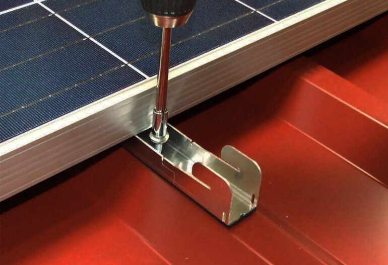Sistem fixare rapida a panourilor fotovoltaice pe acoperis din tabla trapezoidala