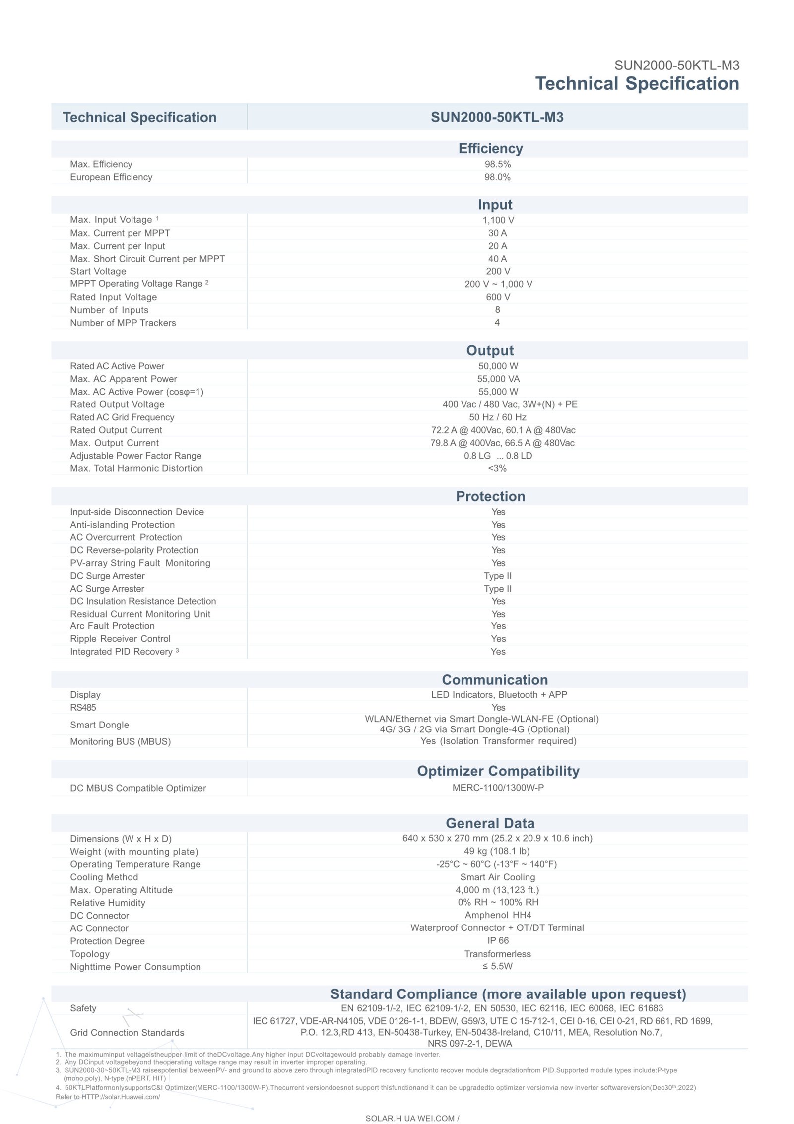 Specificatii SUN2000 50KTL-ZHM3